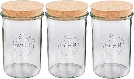 Mikken Lot De 3 Bocaux Weck Avec Couvercle En Liege Bocal De Conservation De 1 Litre Avec Etiquettes Inscriptibles Amazon Fr Cuisine Maison
