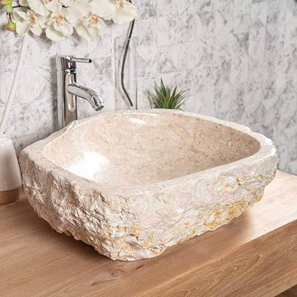 Wanda Collection Grande Vasque De Salle De Bain A Poser Roc En Marbre Creme 45 55 Cm Amazon Fr Cuisine Maison