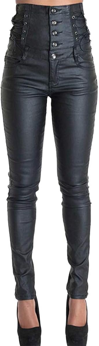 Pantalon Simili Cuir Femme Taille Haute Steampunk Store