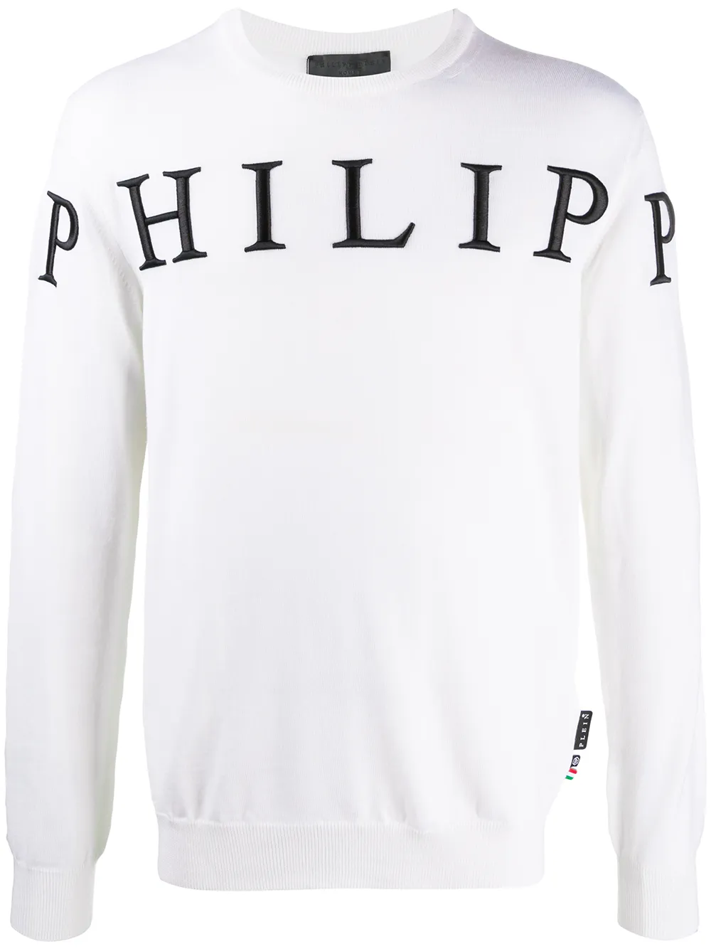 Shop White Philipp Plein Logo Intarsia Virgin Wool Jumper With Express Delivery Farfetch