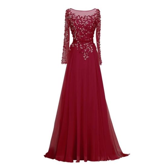 Bordeaux Robe De Soiree Cocktail Longue Manche Longue Haut Perle Strass Sexy Tulle Transparent Avec Ruban Plisse A Line Princesse Vert Vert Achat Vente Robe De Ceremonie Soldes Sur Cdiscount