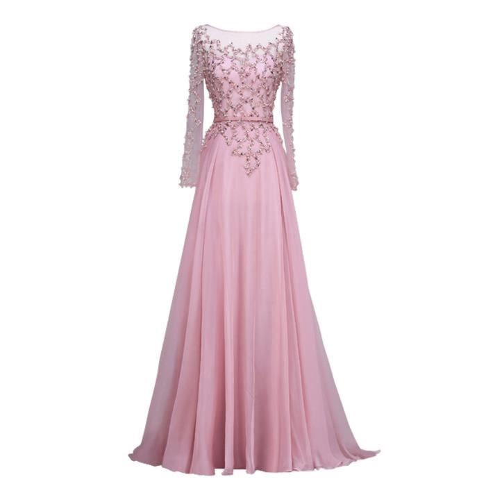 Rose Robe De Soiree Cocktail Longue Manche Longue Haut Perle Strass Sexy Tulle Transparent Avec Ruban Plisse A Line Princesse Rose Rose Achat Vente Robe De Ceremonie Soldes Sur Cdiscount