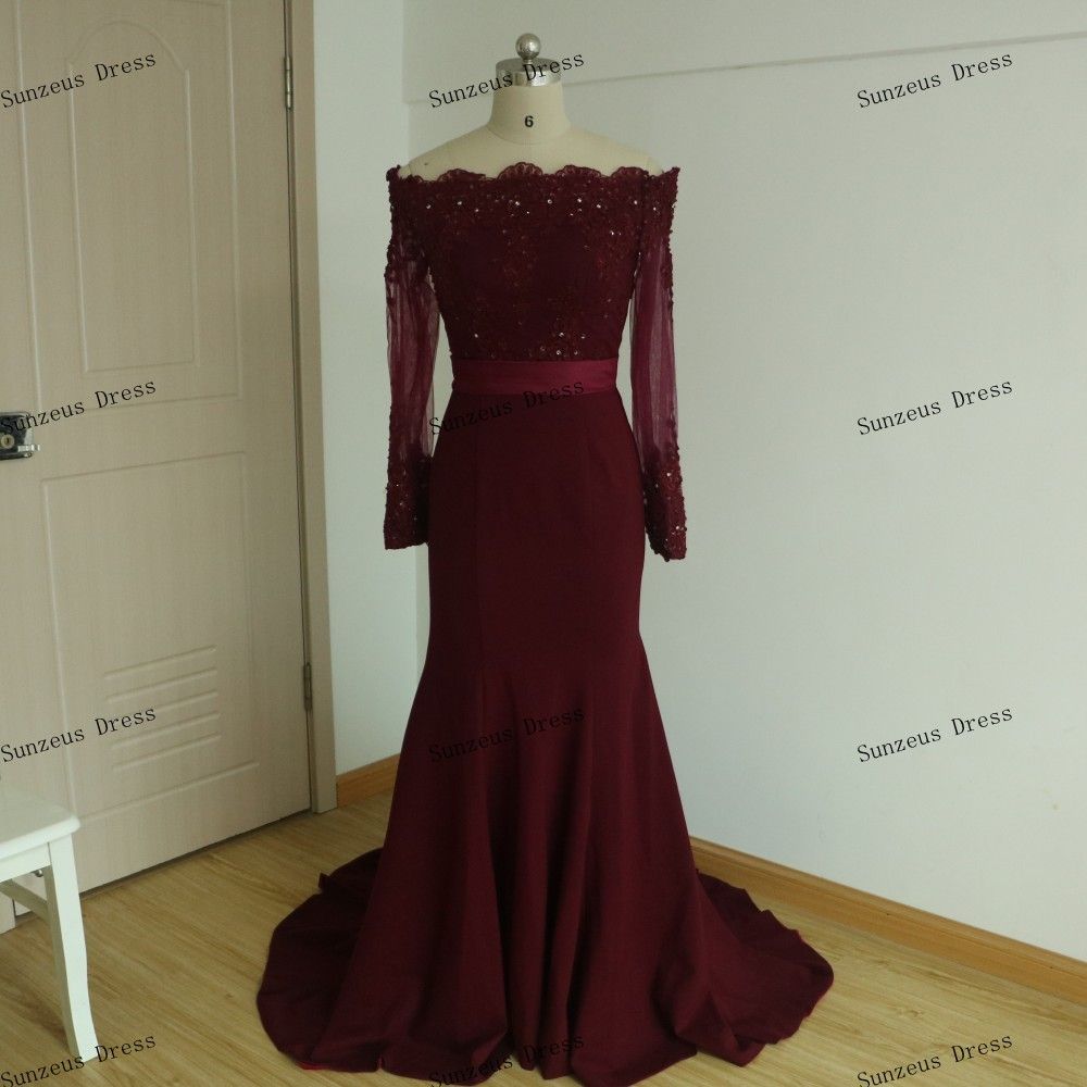 Acheter Robe De Soiree Longue Manche Longue Mermaid Col Bateau A Manches Longues Bourgogne Robes De Soiree Perlee Appliques Longue Robe De Soiree De 1 32 Du Sunzeusdress Dhgate Com