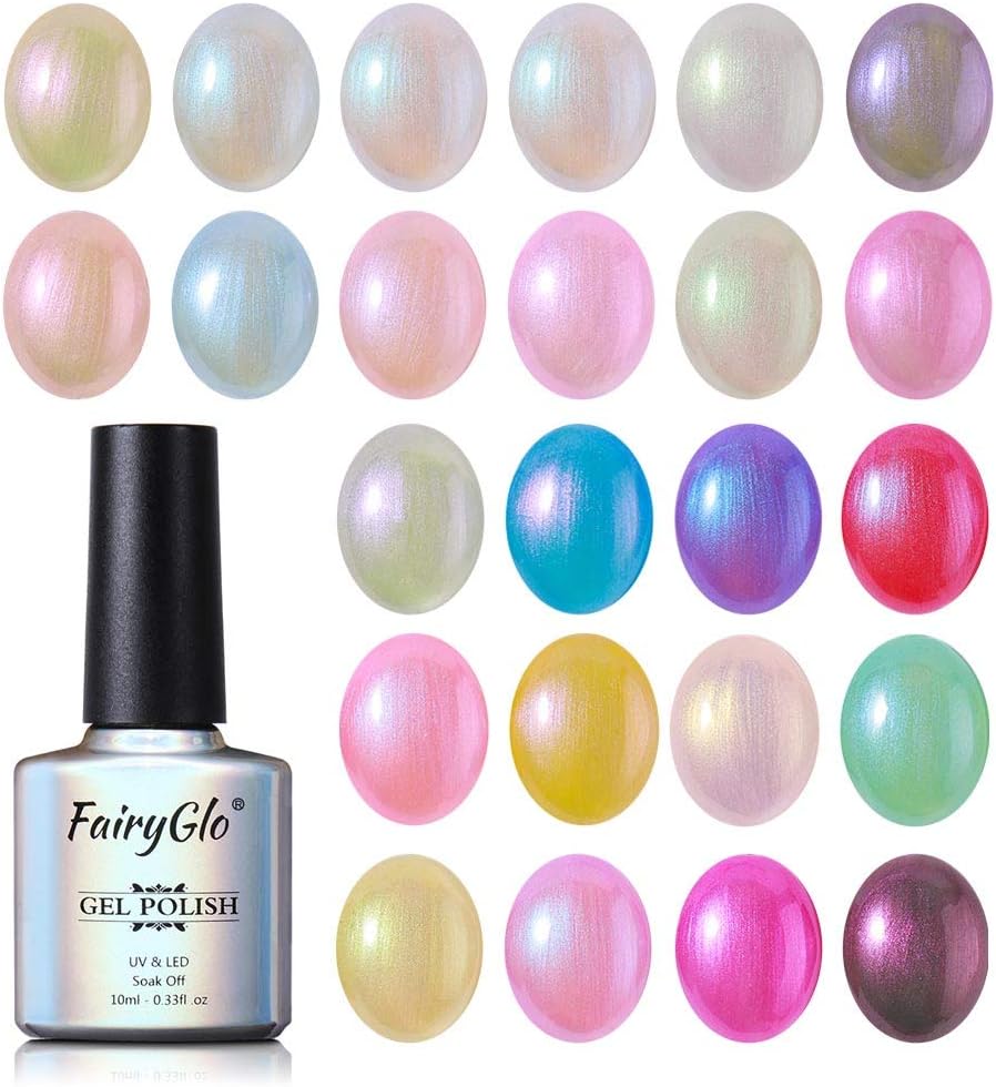 Amazon Com 24pcs Pearl Nail Polish Set Mermaid Gel Manicure Salon Decor Nail Art Elegant Shell Shiny Under Light Uv Led Soak Off Set Fairyglo 10ml Health Personal Care