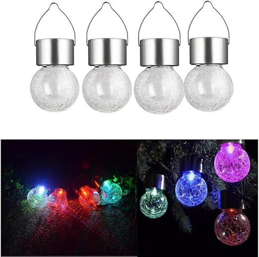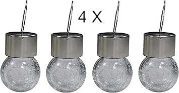 Jeerui Lot De 4 Lampes Solaires A Suspendre En Forme De Boule De Verre Craquele Avec Led Amazon Fr Luminaires Et Eclairage