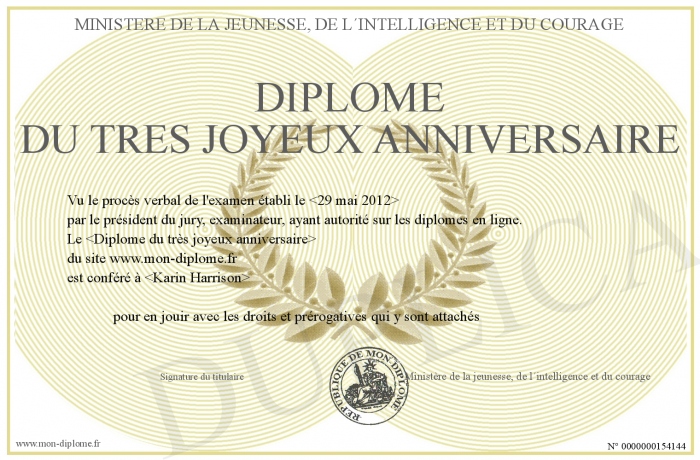Diplome Du Tres Joyeux Anniversaire