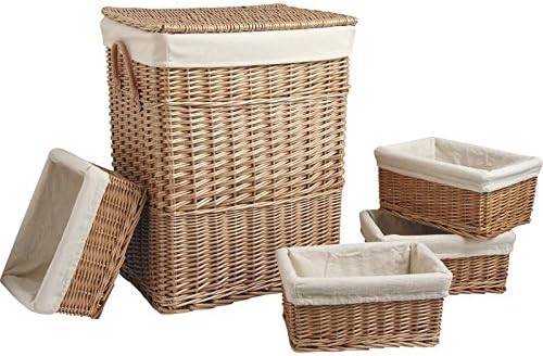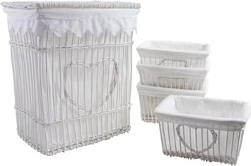 Panier A Linge Et 4 Corbeilles Coeur En Osier Et Coton Blanc Amazon Fr Cuisine Maison