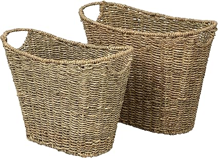 Panier Elegant En Osier Pour Porte Revues Ou Journaux Style Vintage Rustique En Fil De Paille Tressee Avec Poignees Pour Salon Salle De Bain Cuisine Maison Et Bureau Jonc De Mer Amazon Fr