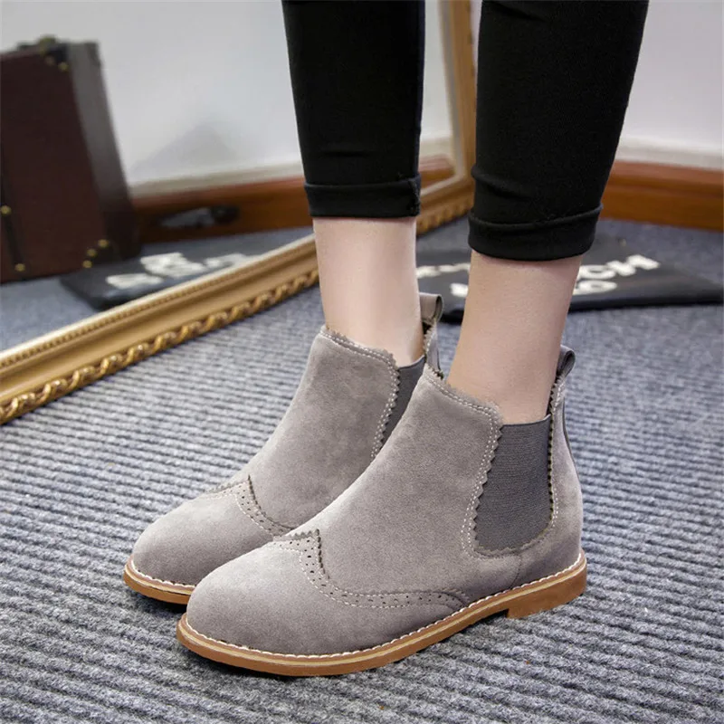 Bottines Femme Marque Cootelili Talons Plats Chaussures Femme Daim Cuir Bottes Brogue Decoupes Sans Lacet Noir Gris Grande Taille 40 Aliexpress