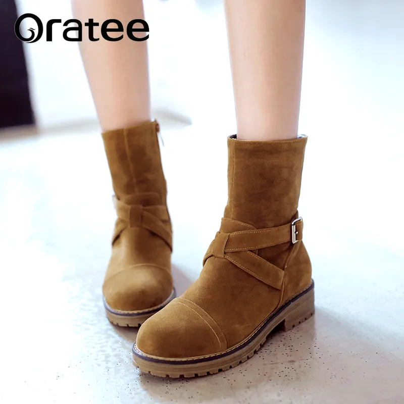 Bottines Femme Talons Plats Chaussures Femme Simili Daim Cuir Bottes Richelieu Sans Lacet Botas Noir Marron Kaki Grande Taille 33 43 Aliexpress