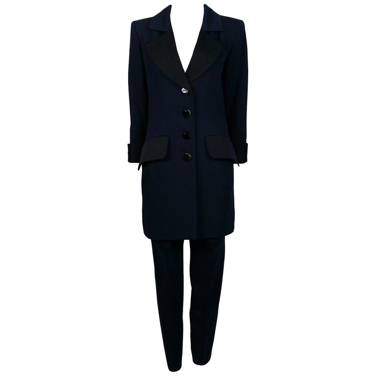 Years later Saint Laurent brought them power”. Glorious Yves St Laurent Ladies 3piece 'Tuxedo' suit Sz 38 (Au68) 'Le Smoking' style Double breasted jacket, pants and skirt Woolcrepe fabric French couture. In 1962, after completing National Service, Yves Saint Laurent set up his own fashion house with Pierre Bergé In 1966, he introduced le smoking his legendary smoking suit His other inventions include the reefer jacket (1962), the sheer blouse (1966), and the jumpsuit (1968).