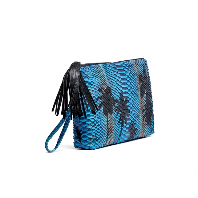 Pochette Main Python Andy Bleue