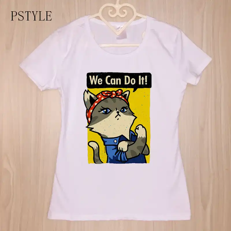 Pstyle Cartoon Tshirt Women We Can Do It Slogan T Shirt Harajuku T Shirt Femme Casual Brand Tops Tee 18 Summer T Shirts Brand T Shirt It T Shirtt Shirt Brand Aliexpress