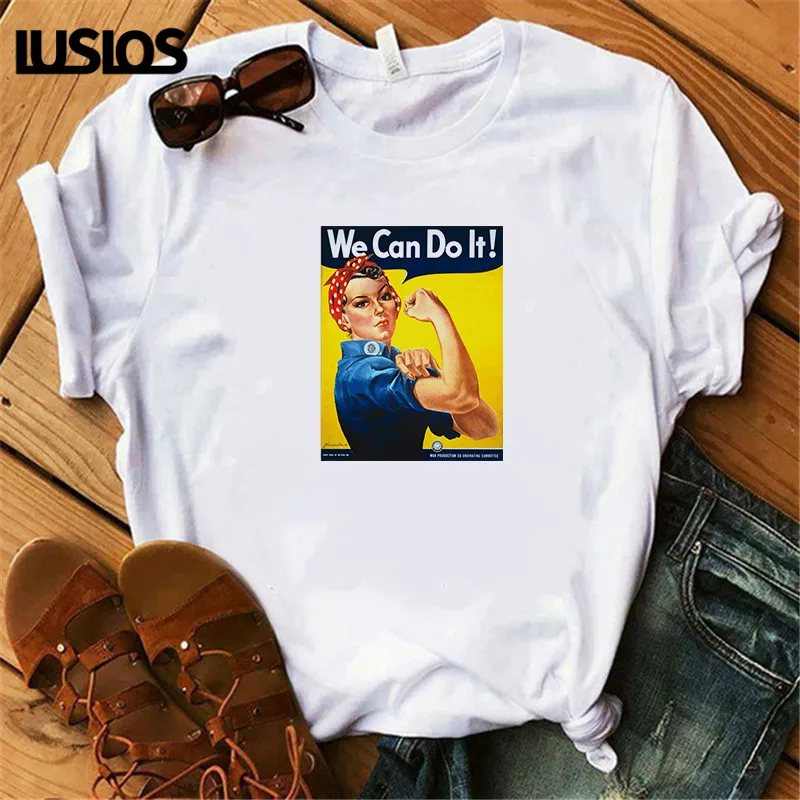Luslos We Can Do It เส อทำงานผ หญ งพ มพ ตลก Femme ฤด ร อนเส อผ าแขนส น Homme Casual Streetwear ส ขาวเส อย ด เส อย ด Aliexpress