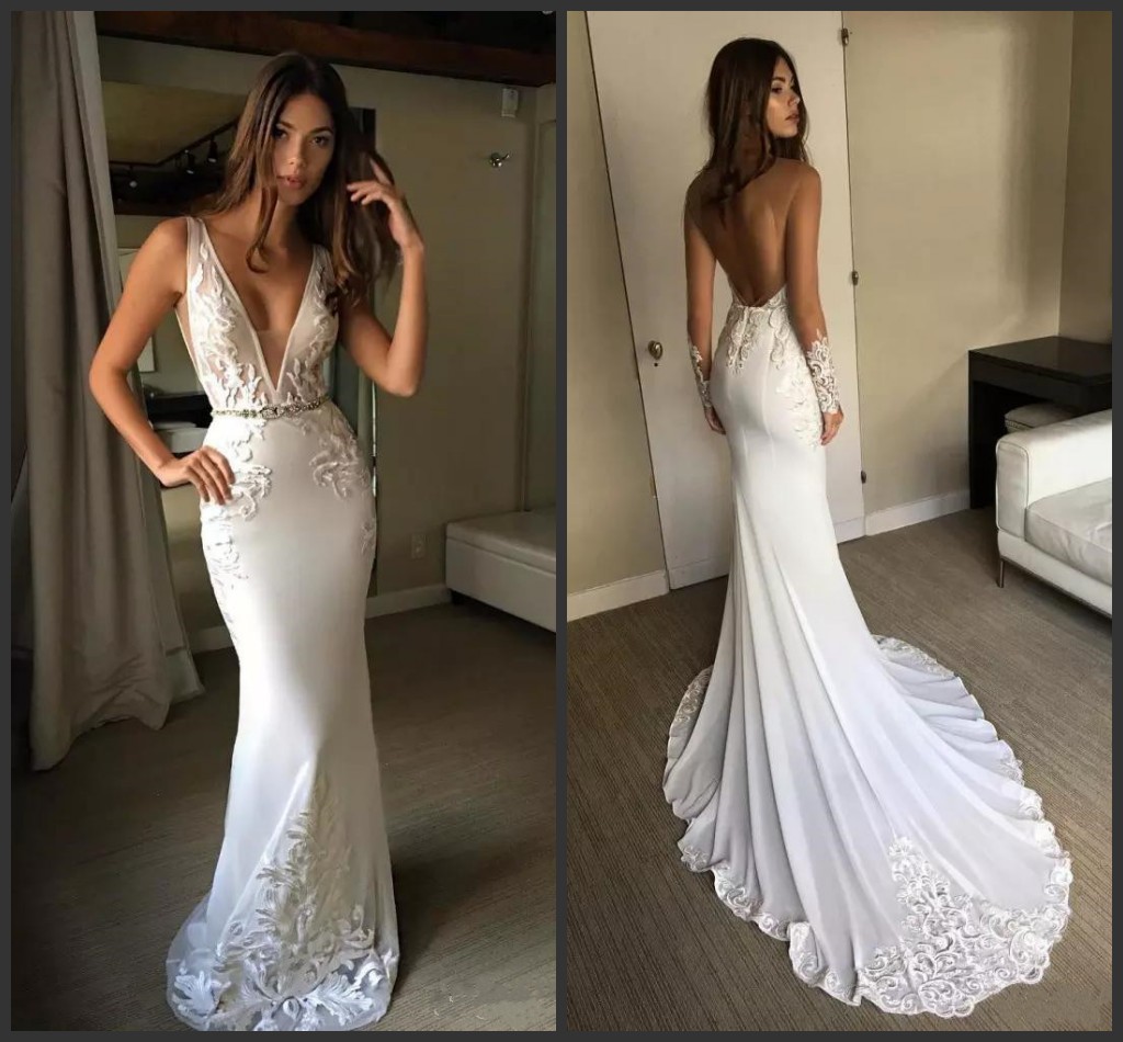 Robe De Mariee Longue Sexy Decollete En V Dos Plongeant En V En Appliques Aliexpress