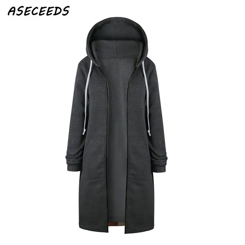 Gilet Long Pour Femmes Grande Taille Manteau Automne Hiver 19 Veste A Capuche A Fermeture Eclaire Coupe Vent Cardigan Noir Et Gris Vetements D Exterieur Pour Femmes Decontracte Aliexpress