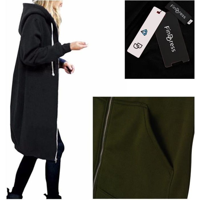 Manteau Femmes Longs Hoodie Zippe Veste Chaude Sweat Shirt Hiver Hoodie Sweats A Capuche Sport Zip Up Manche Longue Blouson Grande Taille Coupe Vent Gilet Long Automne Poches Amazon Fr Vetements Et Accessoires