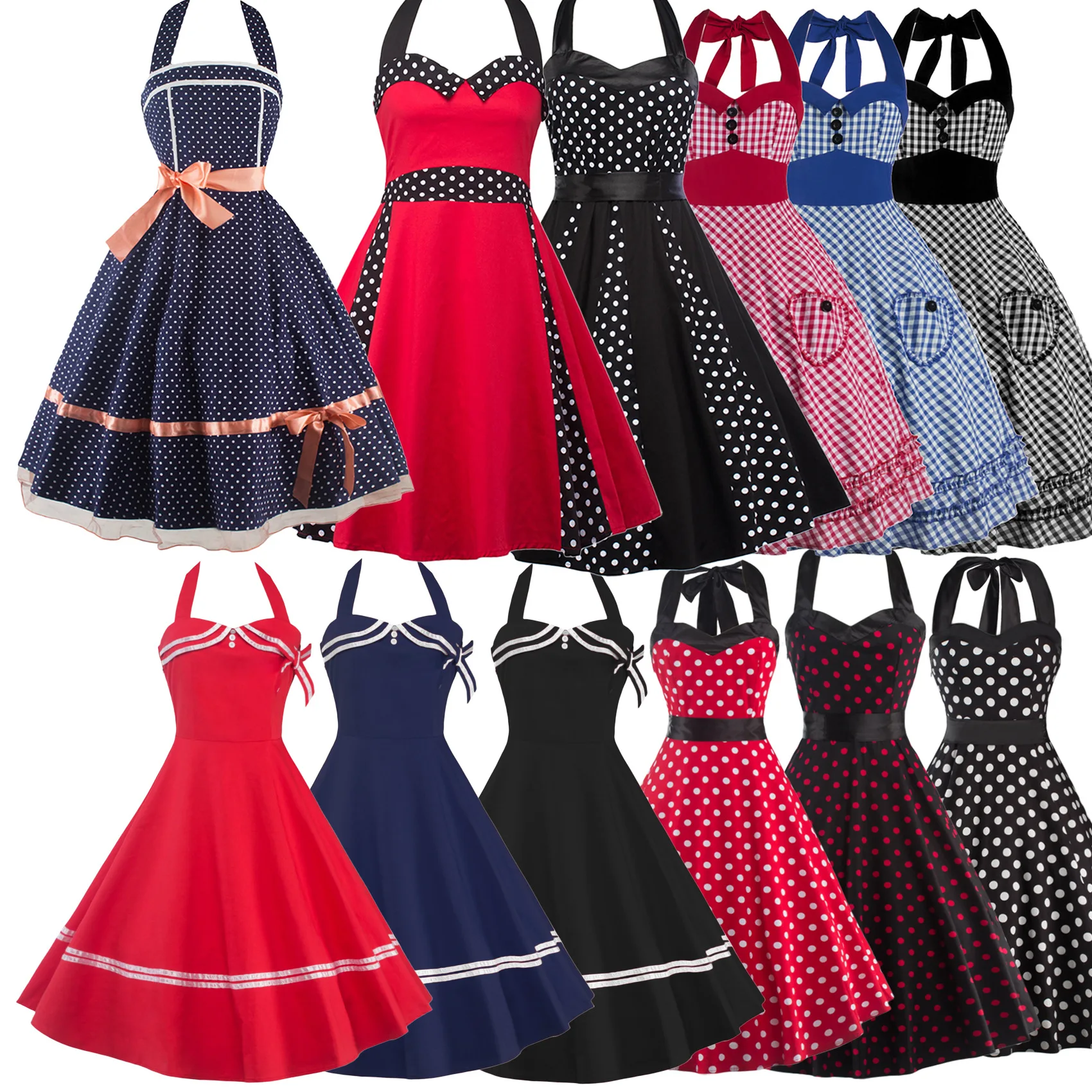 Femmes Robe Grande Taille Vetements D Ete 17 Retro Swing Robe Courte Robe Pin Up Dot Vintage 60 S 50 S Rockabilly Robes Aliexpress