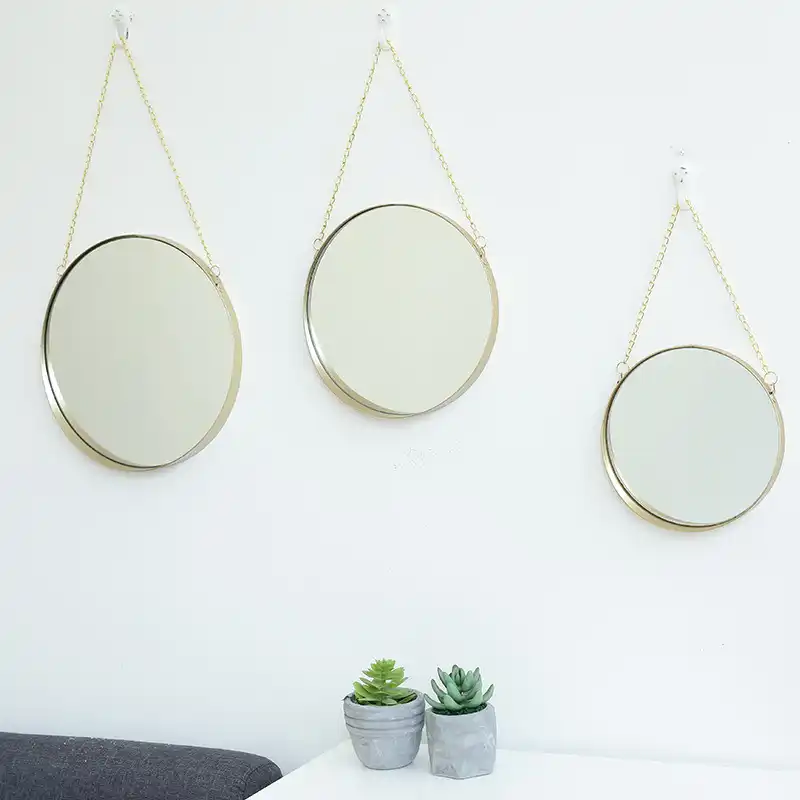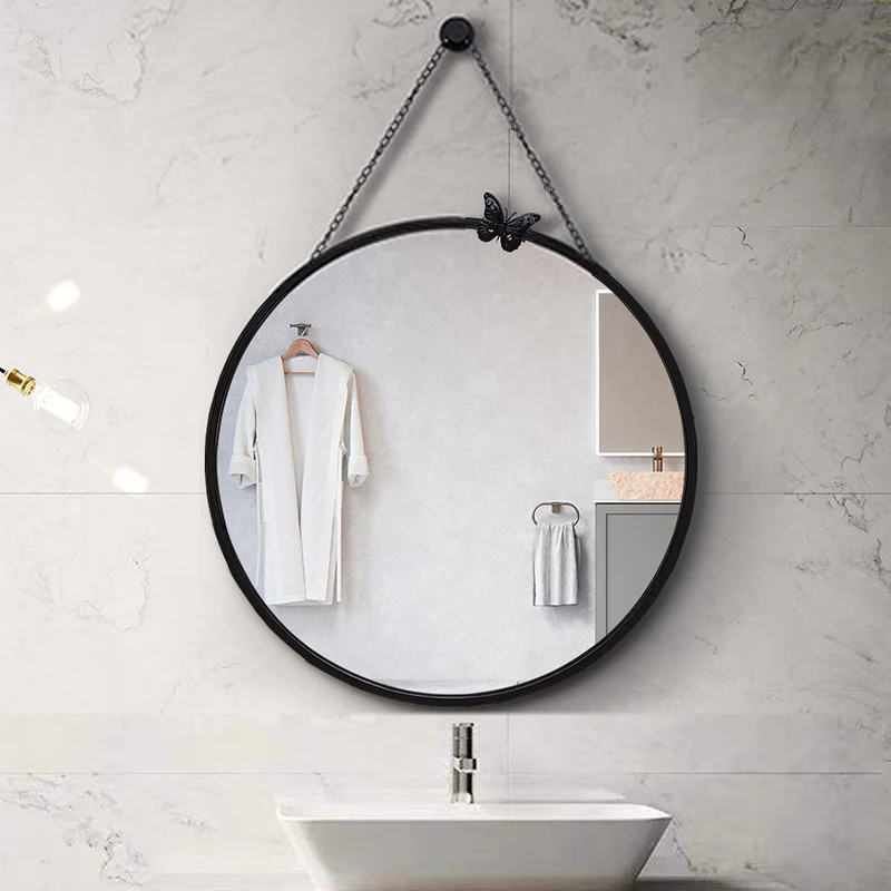 Miroir Rond Avec Chaine De Suspension Miroir Mural Decoratif Avec Cadre En Metal Avec Papillon Amovible Crochet Mural Offert Aliexpress