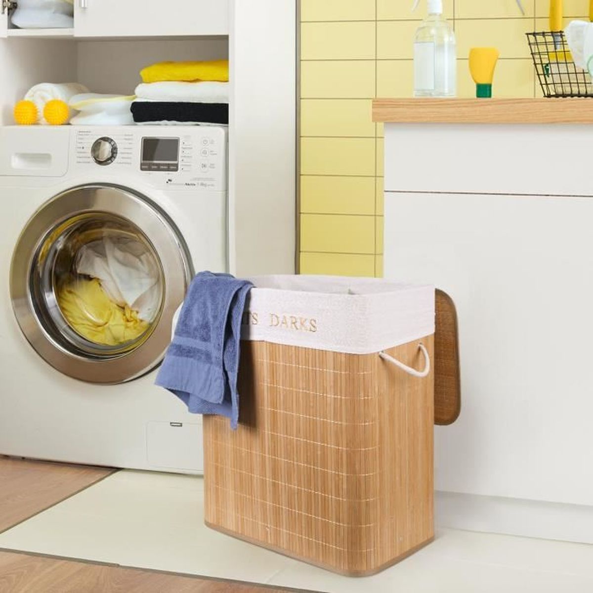 Jaune Claire Homfa Panier A Linge Pliable 100l En Bambou Naturel Corbeille A Linge De 2 Compartiments En Lin Panier Linge Sale Joli Avec Poignees Paniers A Linge Pliables Cuisine Maison