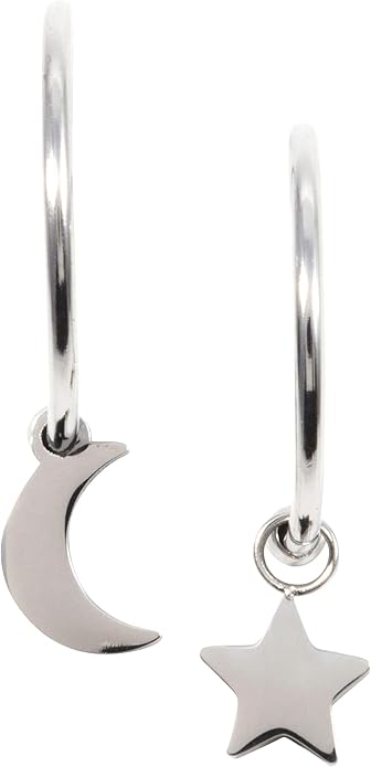 Happiness Boutique Femmes Creoles Lune Et Etoile En Couleur Argent Petites Boucles D Oreilles Rondes Bijoux Acier Inoxydable Happiness Boutique Amazon Fr Bijoux