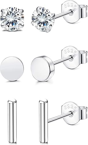 Cassieca 3 Paires Boucles D Oreilles En Argent 925 Pour Les Femmes Filles Brillant Zyrconium Ronde Clou Boucle D Oreilles Petite Bar Boucle D Oreille Amazon Fr Bijoux