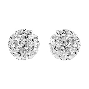 Boucles D Oreilles En Argent Rhodie Petite Boule De Resine Et Strass Blancs Et Fermoir Clou Avec Poussette