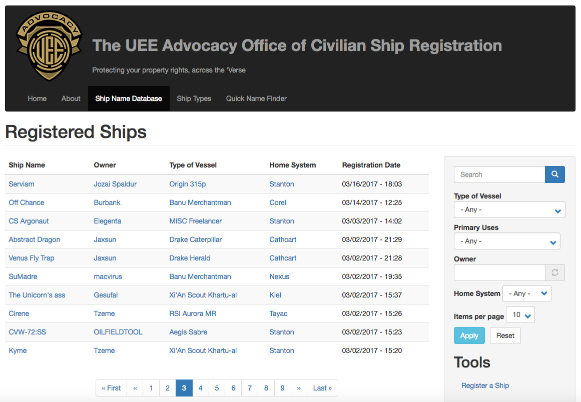 Fleet And Ship Database For Star Citizen Uee Registrar