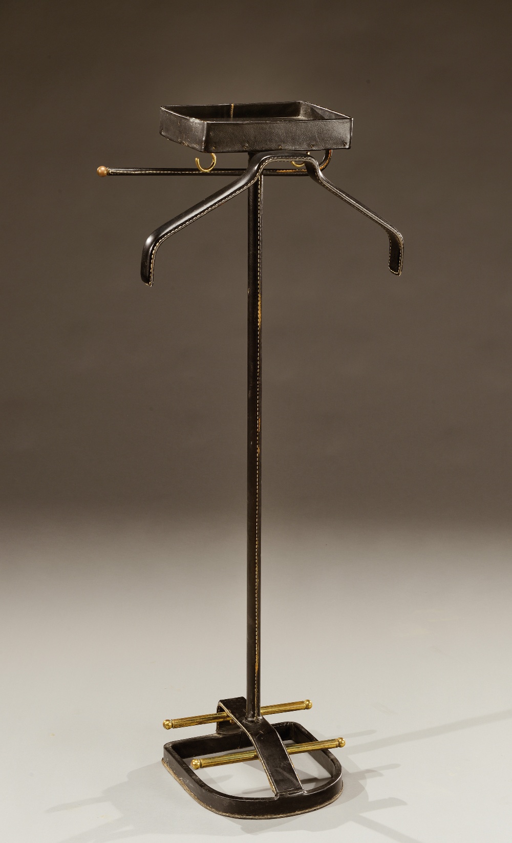 A French 1950 S Jaques Adnet Stitched Leather And Brass Valet De Nuit Bukowskis