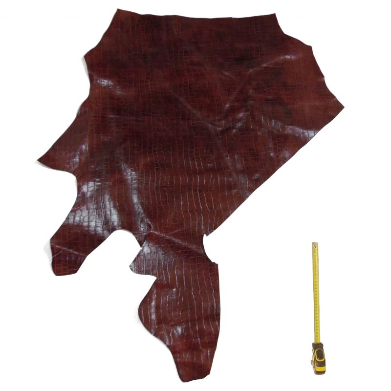 Cuir Vachette Pl Fleur Imprime Croco Bordeaux Xl Texture Cuir Peau Cuir