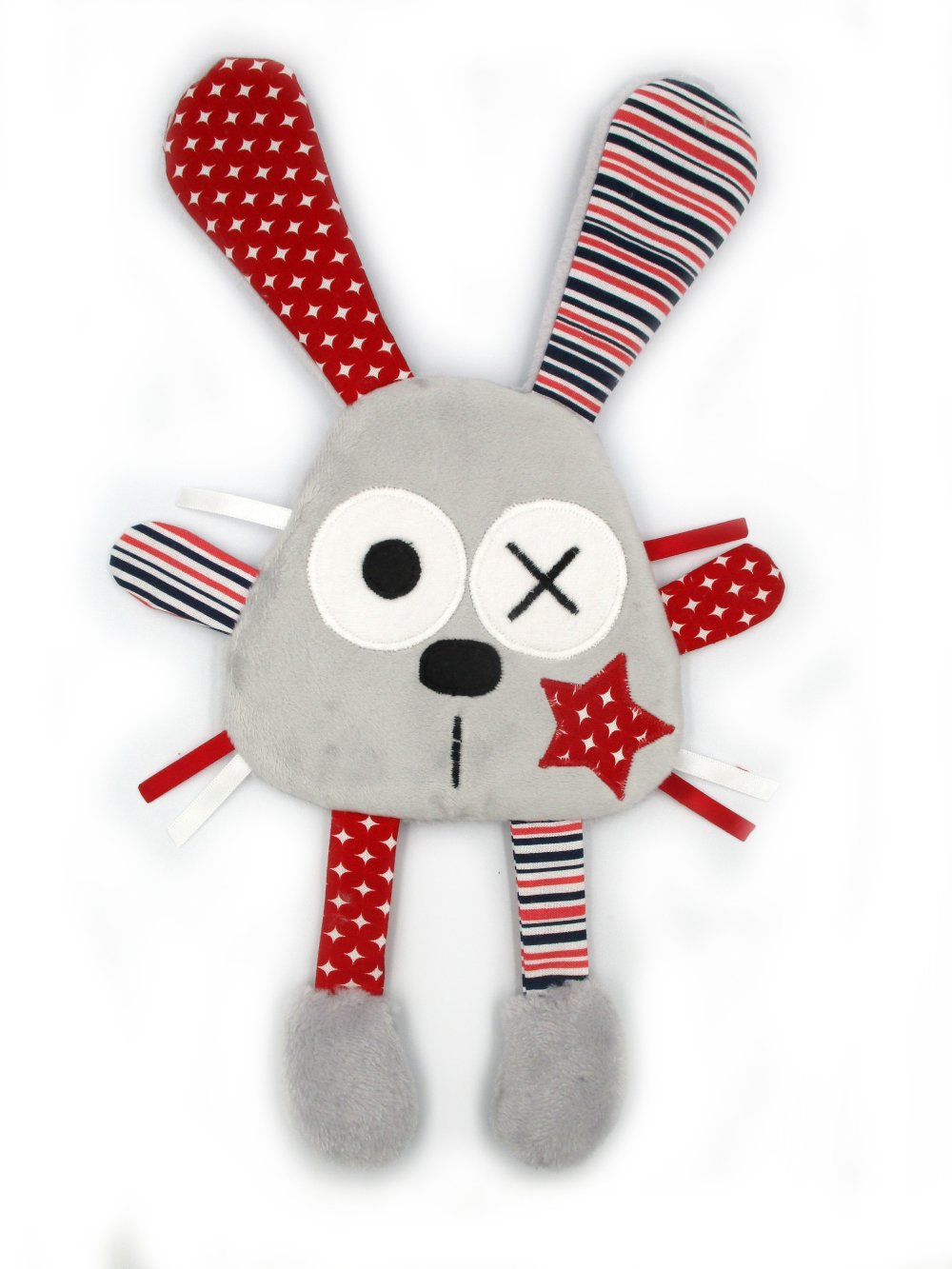 Doudou Bebe Lapin Tissu Coton Minky Gris Rouge Fait Main Personnalisable 36 Cm De Hauteur Un Grand Marche