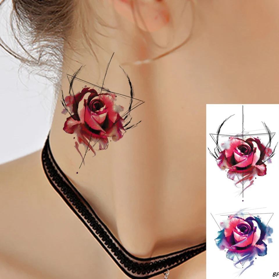 Vankirs Watercolour Women Fashion Tattoos Temporary Triangle Red Flash Rose Flash Tatoos Girls Flower Fake Tattoo Body Arm Ear Temporary Tattoos Aliexpress