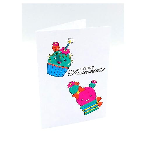 Carte Joyeux Anniversaire Fille Femme Enfant Carte Anniversaire Carte De Voeux Anniversaire Cactus Cup Cake Carte Double 10 5 X 14 8 Cm Avec Enveloppe Amazon Fr Handmade