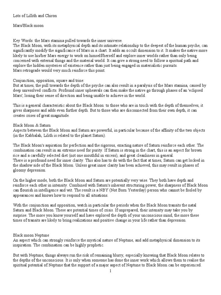 Dec 30, Black Moon Lilith is not an object, but a point a purely lunar realm where the moon is in isolation from everything else In our chart, Lilith describes where we value free will over inclusion, where we go our own way Lilith is where we aren’t willing to compromise Lilith in Libra or the 7th House You channel your chaos through your. Oct 14, In Aries, Lilith is assertive and loud, but Black Moon Lilith in Taurus wants to take a step back, press pause, and make sure of its positions first before doing anything It may take longer to take a stand with Black Moon Lilith in Taurus, but once we do, we can stay with it no matter what.
