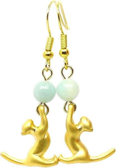 Les Bijoux Acidules Boucles D Oreilles Or Mat Chat Et Perle En Pierre Naturelle Bleu Ciel Bijoux Createur Pour Femme Ou Adolescente Amazon Fr Bijoux