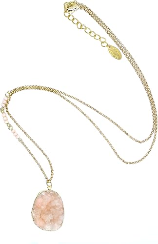 Les Bijoux Acidules Sautoir Pierre Naturelle Rose Poudre Scintillant Druzy Bijoux Createur Boheme Pour Femme Ou Adolescente Amazon Fr Bijoux