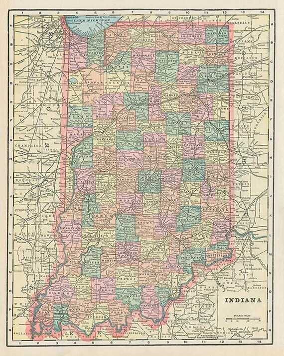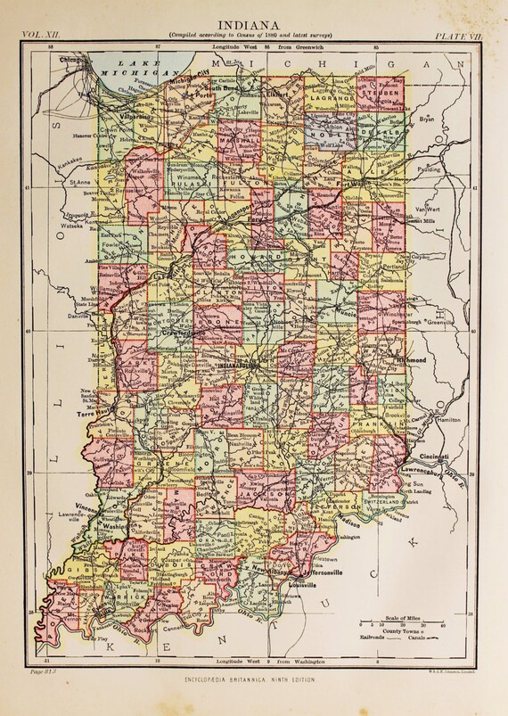 Antique State Map Of Indiana Usa Encyclopedia Britannica Etsy
