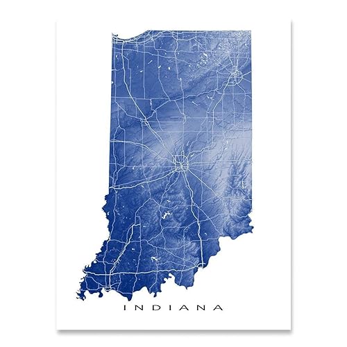 Amazon Com Indiana Map Art Print 8x10 And Indiana Poster 24x36 In State Artwork Usa Wall Decor Handmade Topographic Maps With Roads By Maps As Art Handmade