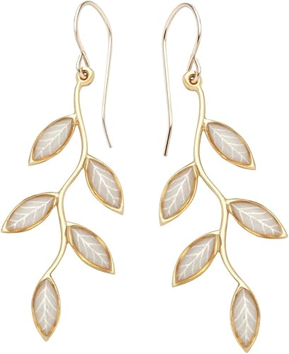 Boucles D Oreilles Pendantes Feuilles De Laurier Doree A L Or Fin