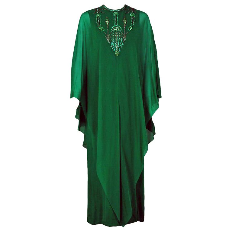 Vintage 1965 Pierre Cardin Haute Couture Beaded Green Silk Chiffon Caftan Gown For Sale At 1stdibs