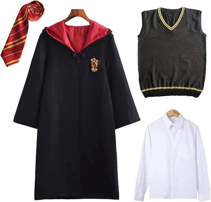 Djsj Harry Potter Costume Bambini Adulti Cosplay Costumi Set Unisex Mantello Gryffindor Hufflepuff Ravenclaw Slytherin Memorabilia Coat Cravatta Camicia Gilet Travestimento Carnevale Halloween Amazon It Abbigliamento