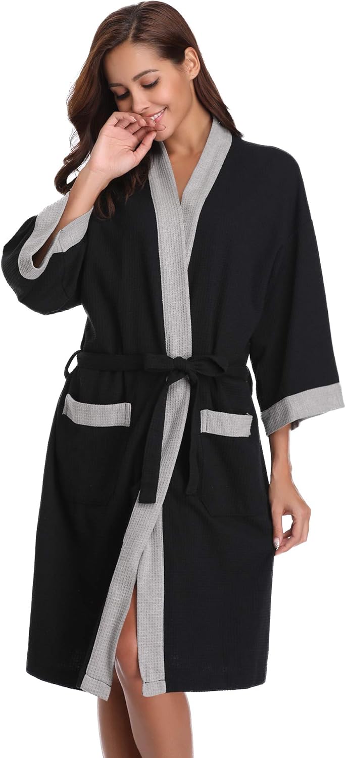 Vlazom Peignoir Femme Coton Gaufre Leger Robe De Chambre Unisexe Spa Sauna Peignoir De Bain Eponge Femme Vetements