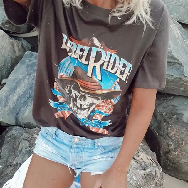 Online Shop Rebel Rider Organic Chic Tops Femme Rock N Roll Top Printed Shirt O Neck Short Sleeve Summer Shirt Women Top Casual Pullover New Aliexpress Mobile En Title
