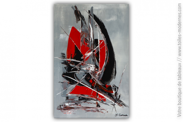 Tableau Moderne Made In France Design Rouge Noir Gris Contemporain Abstrait Chiaradeco