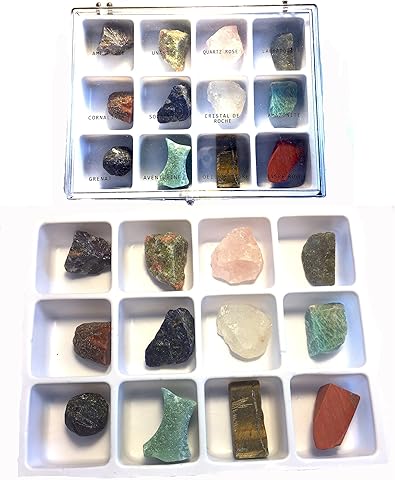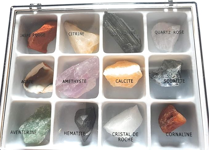 Des minéraux bruts pour les amateurs et collectionneurs, des pierres roulées qui peuvent servir en soin, ( lithothérapie), des sujets, (animaux fantastiques ou réels, personnages et bouddhas), taillés dans la masse, des pierres taillées de diverses formes, des bijoux en pierre naturelle, (colliers, bracelets, bagues, boucles d'oreilles ou parures), des tableaux, (natures mortes, paysages. CrystalTears Pierre Precieuse Minéraux Brut Précieuse Variée 12PCS Coffret Pierres et Cristaux Reiki Chakra Irrégulière Collection Petite Décoration 3,7 sur 5 étoiles 35 15,99 € 15,99 €. Des ensembles et collections de pierres et minéraux pour explorer le monde de la géologie et la minéralogie Collections de roches, minéraux et fossiles La plus belle collection de minéraux pour débuter une collection en couleur SKU MIN0/1 24,95 $ – 69,95 $ Choix des options Ajout aux préférés.