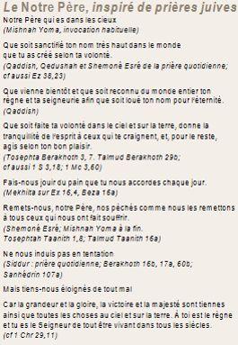 C’est à partir de ces deux textes qu’a été composée la prière du « Notre Père » que nous connaissons aujourd’hui, laquelle n’est donc pas sortie telle qu'elle de la bouche de Jésus Il est intéressant de commencer par comparer ces deux versions de la prière du Seigneur (sont mises en gras en gras les expressions communes à.