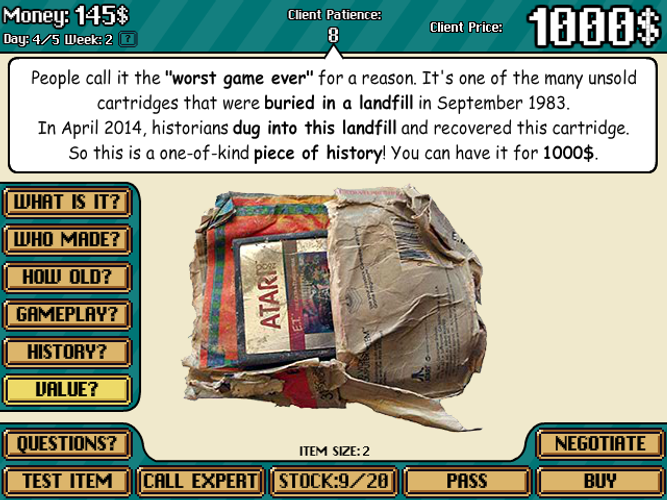 Vintage Game Shop is a game about using your knowledge of retro or classic video games to make profit!.