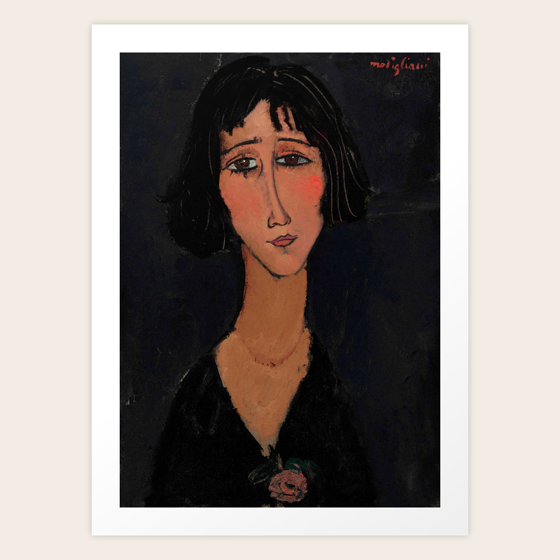 Customize your modigliani print with hundreds of different frames and mats, if desired. Amedeo Modigliani was an Italian artist known for his unique elongated style of portraiture Characterized by lengthened limbs, almond eyes, and swooping noses, the lasting influence of sculpture—particularly African masks—was prominent in the renderings of his subjects, including his wife the painter Jeanne Hébuterne. The drawing is a small, pencil on paper work titled “Portrait of Lunia Czechowska,” and dated from 1916 Modigliani was in Paris at the time he met Lunia, a Polish woman, whom he met through his patron and dealer Leopold Zborowski.