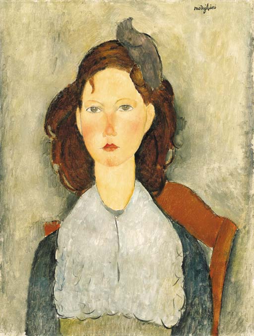 FileAmedeo Modigliani, 1917, Femme au col blanc, oil on canvas, 81 x 602 cm, Musée des BeauxArts de Grenoblejpg. 1419 "Portrait de jeune femme en cheveux (Portrait of a Young Woman), 1908 Oil on canvas, 57 x 55 cm Donated by Geneviève and Jean Masurel,!. Amedeo Modigliani was an Italian painter and sculptor who worked mainly in France He is known for portraits and nudes in a modern style characterized by elongation of faces and figures, that were not received well during his lifetime, but later found acceptance This is our hand painted egg version.