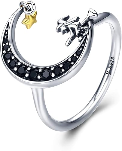 Anazoz Bague Argent Lune Etoile Sorciere Zircone Noir Femme Fantaisie Amazon Fr Bijoux